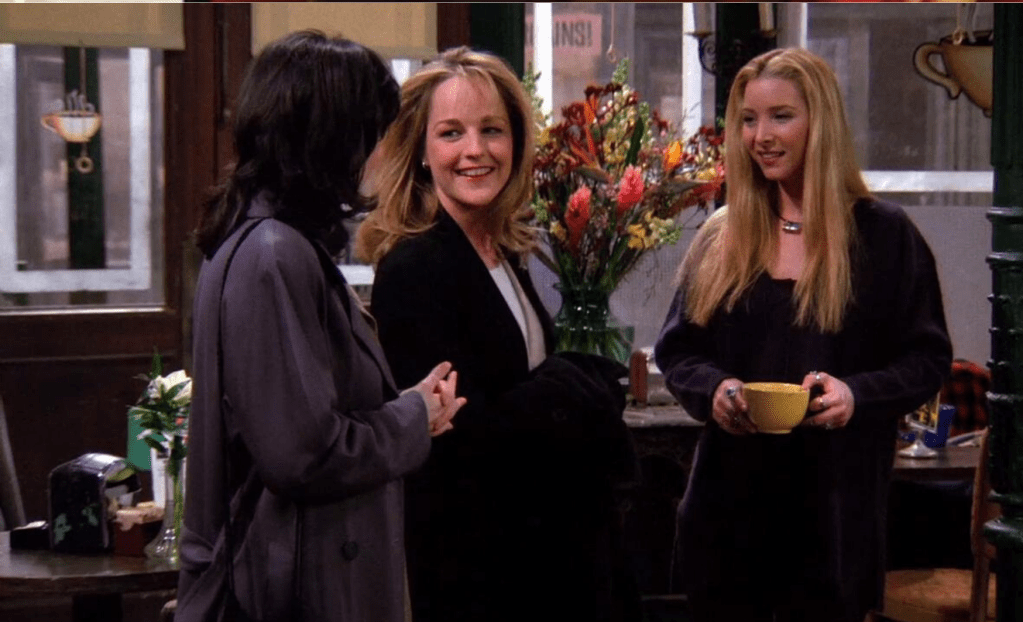 Helen Hunt plays an acquaintance of Pheobe’s twin, Ursula, who spots Pheobe in Central Perk and mistakes her for Ursula. The result is a rather awkard conversation.