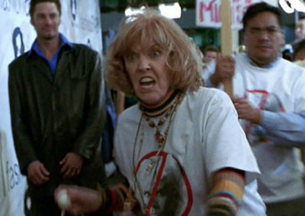 Her role: She plays the part of a protester and shouts “screw you and your little dog too!” at fashion designer Mugatu.