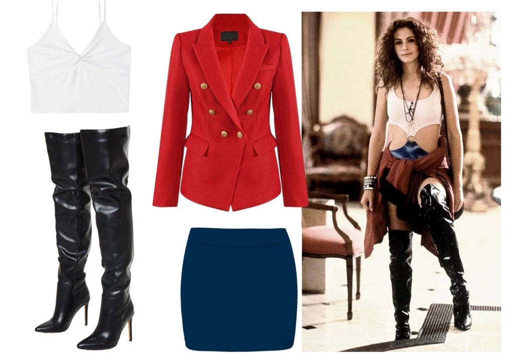 Vivienne made this look iconic as a streetwalker in LA. I obviously don’t recommend you copy her actions, but you can certainly recreate her look from pieces in your own wardrobe. Just remember to curl your hair, strut and complete with a long necklace and chunky bangles.